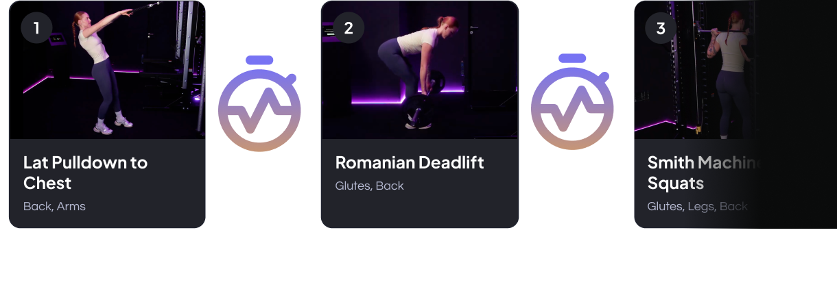 Když dorazíš do posilovny, Betty tě provede celým tréninkem — ukáže ti podrobné video u každého cviku a v reálném čase ti bude dávat hlasové instrukce.